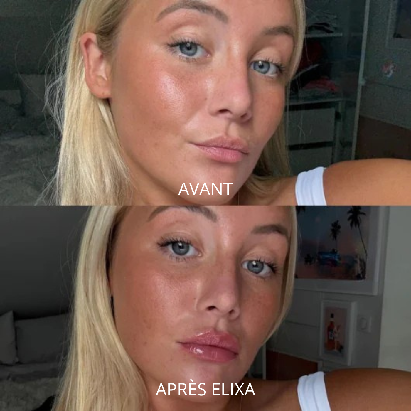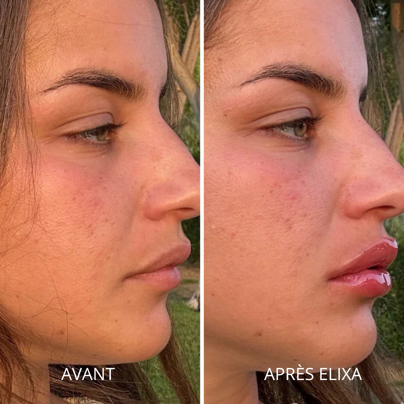 "J'ai toujours été complexée par ma lèvre supérieure qui 'disparaît' quand je souris, mais l'idée d'une aiguille me terrifie. J'avais peur de me retrouver avec des lèvres de canard. J'ai testé Elixa sans trop y croire... Le résultat est bluffant : mes lèvres sont redessinées, plus pleines, mais ça reste MOI. C’est mon secret pour avoir un visage plus harmonieux sans passer par la case chirurgie."